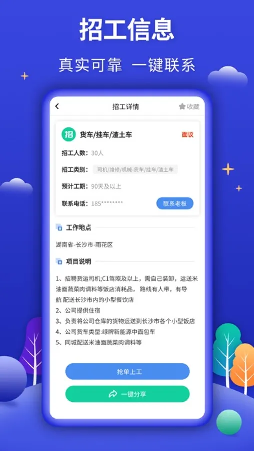 4.今日招工所有招工、找活信息都经过严格审查、电话咨询等多种方式重重筛选,保障信息真实可靠。