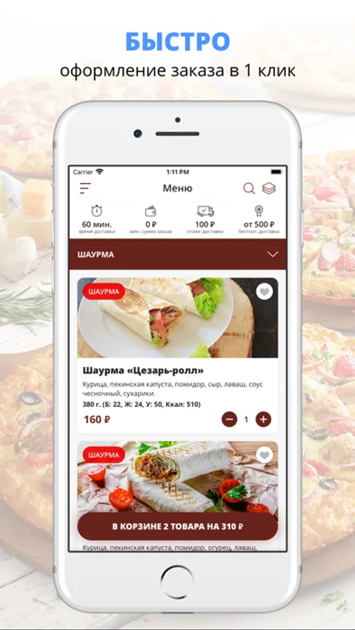 Всегда в нашем меню: бургеры, шаурма, комбо-наборы, салаты и другие готовые блюда!