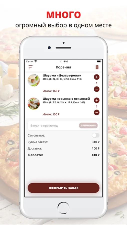 Выбирайте и заказывайте вкусную еду с доставкой всего в несколько кликов!