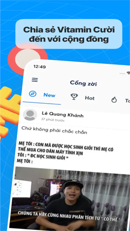 - Bạn hoàn toàn có thể đăng tải hình ảnh, video, file gif với nội dung gây hài hước