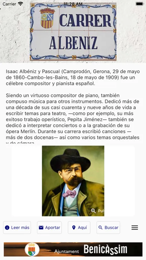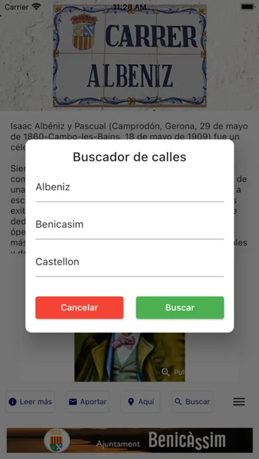 La app geolocaliza al usuario al abrirla permitiendo identificar la calle en la que se está y mostrando su historia. También se puede buscar una calle concreta de cualquier ayuntamiento de España.