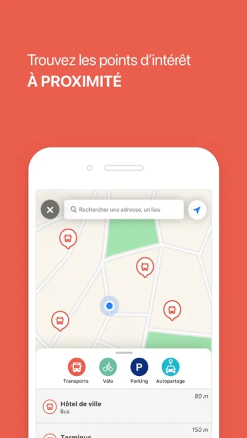 - Identifiez autour de vous tous les arrêts de bus,
