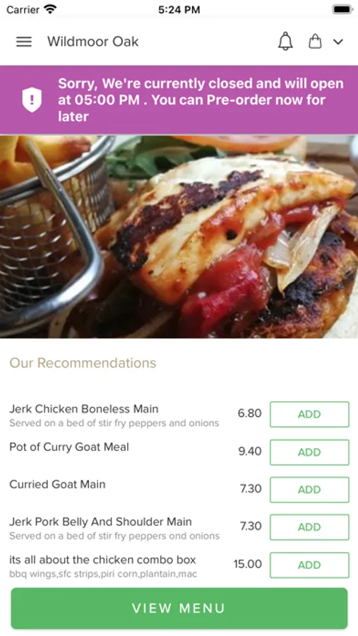 Order food online from one of the finest takeaways in town. Here at Wildmoor Oak in Bromsgrove, and are proud to serve the surrounding area. We serve a variety of food such as Jerk Chicken, Patties, Salt Fish and more. You can find our whole menu on our app, filled with mouth-watering dishes and catering for all kinds of different tastes! Thank you for visiting Wildmoor Oak in Bromsgrove. We hope you enjoy our online ordering app and your food.