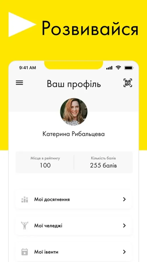 Профіль - аналізуйте свій прогрес, виставляйте цілі, змагайтеся за звання кращого спортсмена.