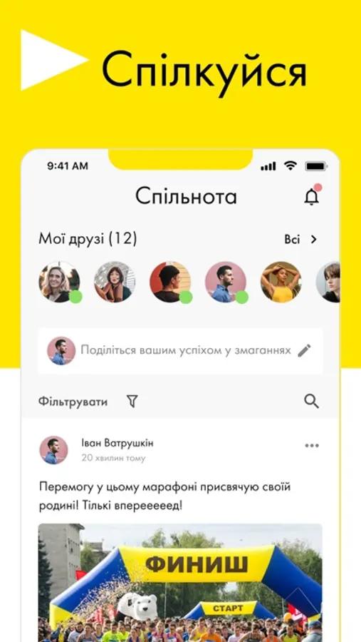 Стрічка новин - діліться своїм прогресом с друзями, читайте новини колективу, обговорюйте враження в коментарях.