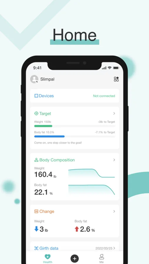 Slimpal is an application for improving your health. This app can help you connect Slimpal Smart Scale/tape measure to measure and record weight/body circumference, including: