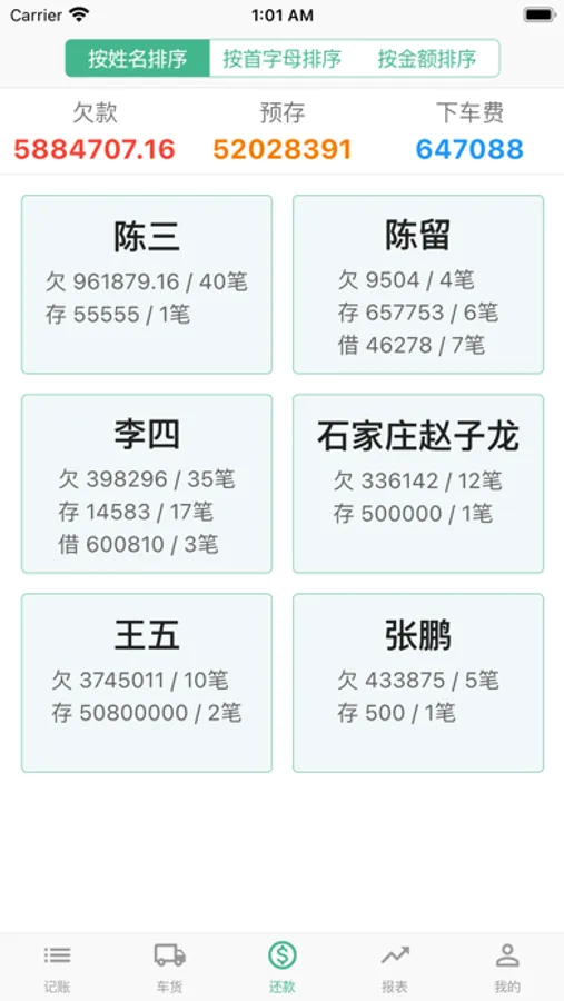 2. 还款:可以方便地查询每位买家的欠账信息并且进行还款,还款时可以“抹零结清”;