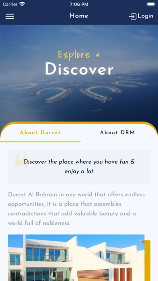 Durrat Resort Management Mobile app provides public information about Durrat and facilitates the residents with access to DRM eServices.The following eServices are available in the Mobile App: