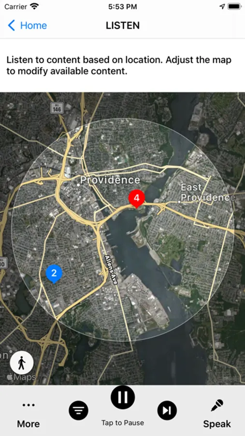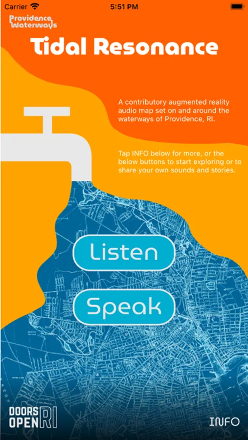 This augmented reality, locative sound project aims to get you out and about, exploring the areas around the waterways of Providence RI, using this app. You will be able to listen to and contribute to a growing body of place-based audio addressing the histories, sounds and stories connected to this city’s water. We call this an “augmented reality audio map” since the app allows you to augment what you hear at a particular location in Providence with whatever pre-recorded audio that the participating artists, or other visitors, have left there for you to find.