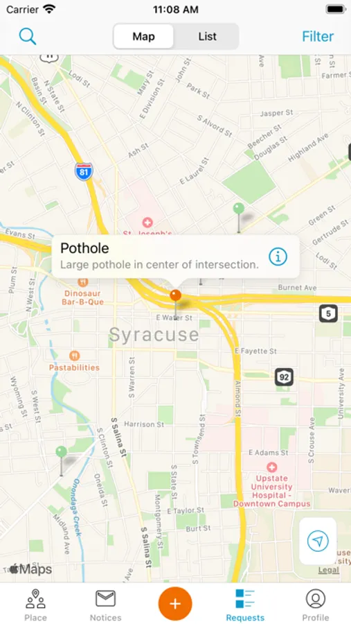 The app allows residents to share as much (or as little) information as they like as registered users or as little information as they like as anonymous users. Registered users can subscribe to follow status updates on their requests. Residents can still place requests to Cityline online at cityline.syr.gov or by calling (315) 448-CITY (2489).