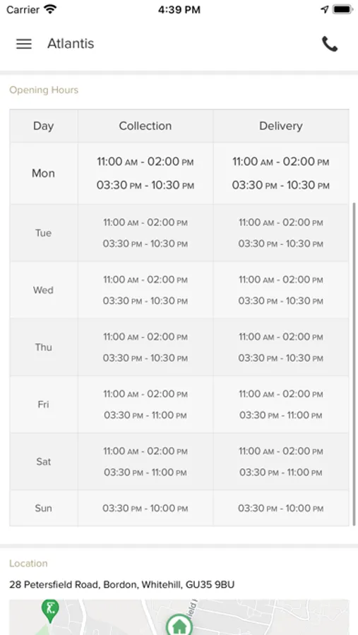 Thank you for visiting Atlantis in Bordon. We hope you enjoy our online ordering app and your food.