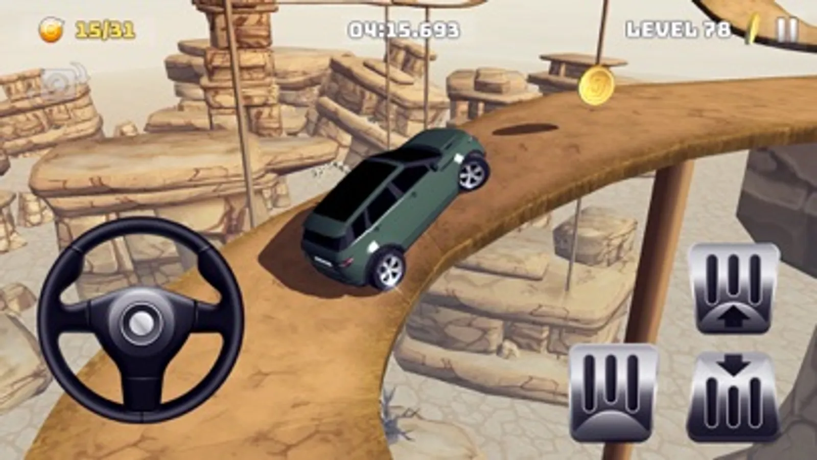 Mountain Climb 4x4 : Offroad Car Drive is a realistic simulation and racing game that you need to climb hills by overcoming the obstacles by an off-road vehicle. You should reach the hill as soon as possible by collecting all the coins on your way in the stage, and complete the stage successfully. You have to do your best to avoid falling from a cliff and facing an obstacle, while trying to reach the hill. You will be addicted to this game with its stages having difficulties and features different from each other, which receive continual updates.