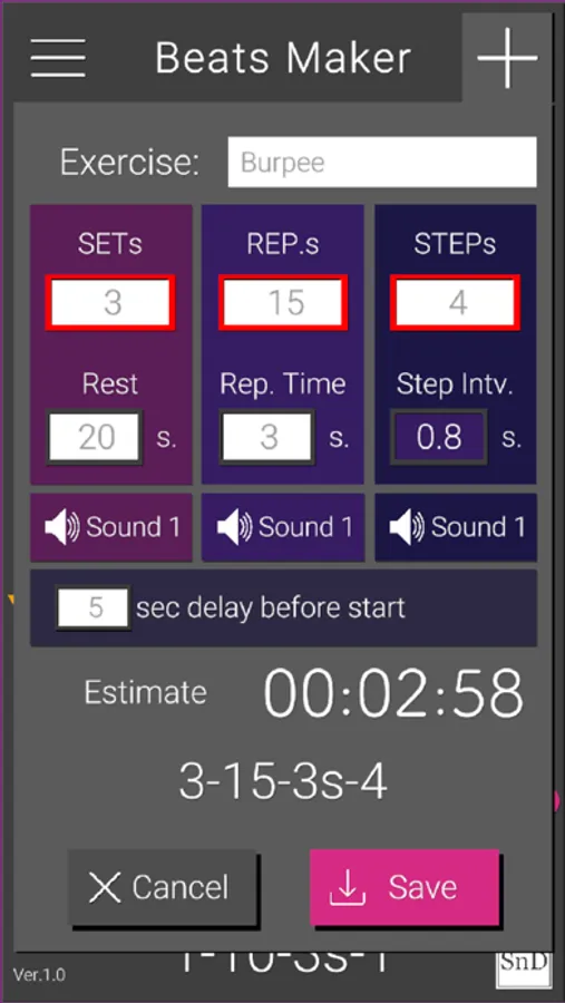 6. You can select sounds to be played at the end of each set, when the number of exercises changes, and whenever the steps change. Silence is also possible.