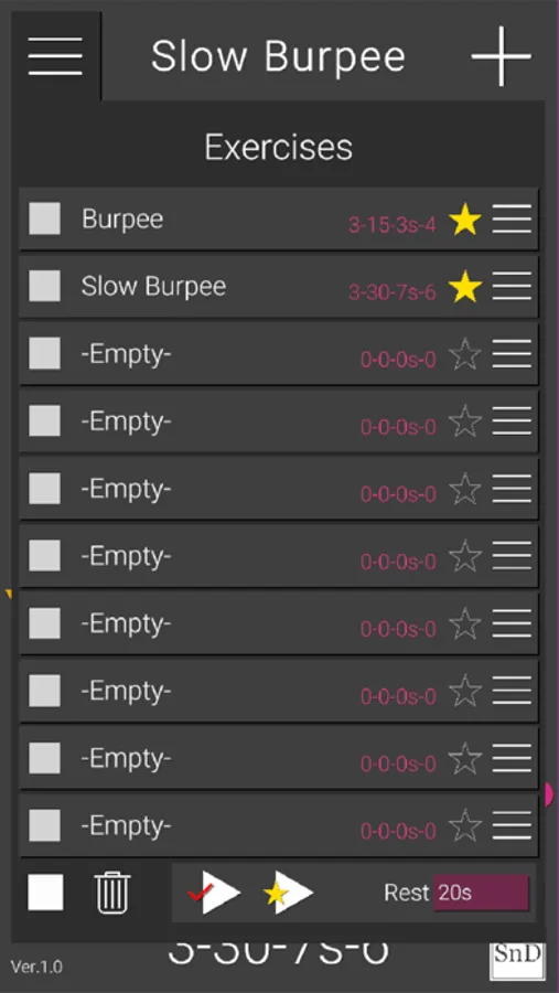 5. Exercises saved in the list can be executed individually, or several exercises can be executed sequentially at once.