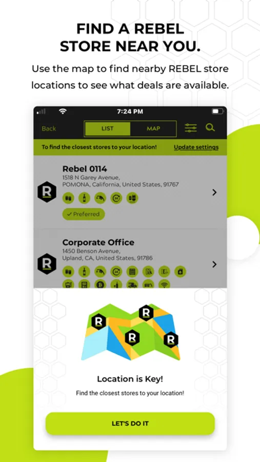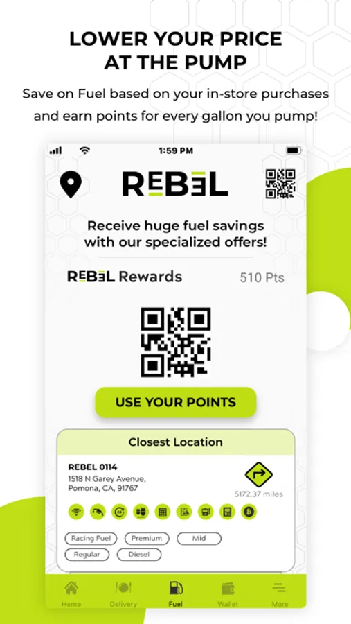 The store locator gives you a hand in finding the closest and most convenient REBEL store for gas and items