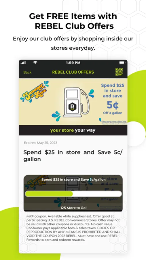 REBEL Rewards members can also keep track of their club status to know when they will receive their next free item."