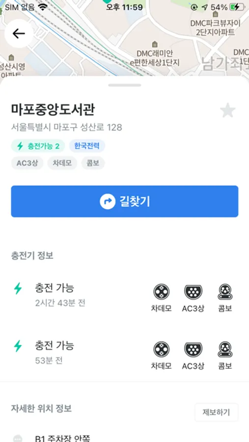 - 원하는 위치를 검색하여 주변 충전소를 확인할수 있습니다.
