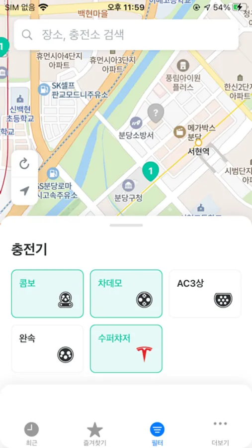 - 슈퍼차저를 포함하여 모든 충전기 타입 (DC차데모,AC3상, DC콤보, 슈퍼차저) 필터를 제공합니다.