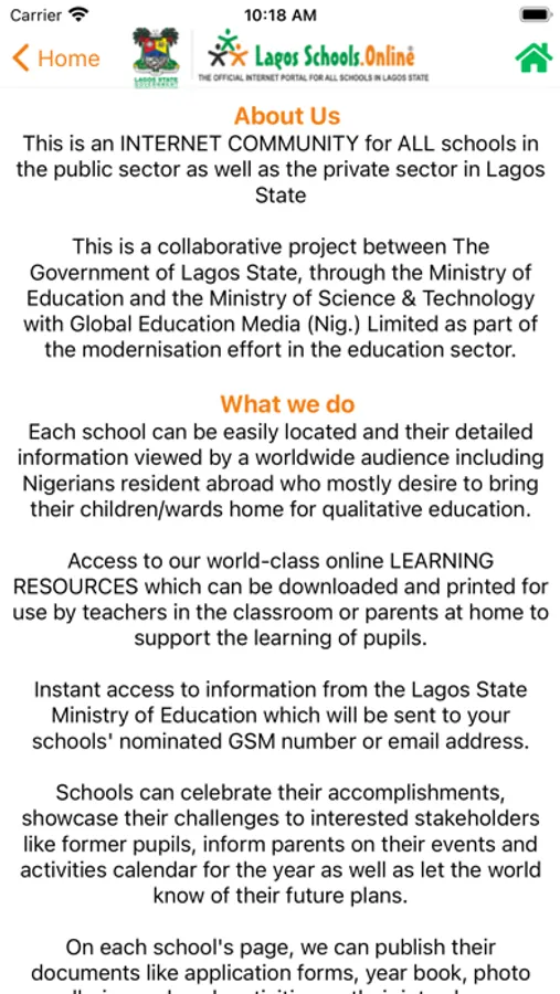 Instant access to information from the Lagos State Ministry of Education which will be sent to your schools' nominated GSM number or email address.