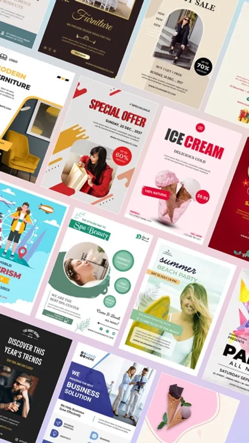 Explore our our varieties of readymade poster templates and designs. You no need to worry about quality and creating poster on time, make beautiful and thoughtful poster in just few tap quickly. Save your poster design and share your poster using our app to your friends, print etc.