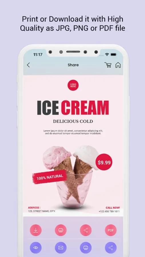 No Graphic skill required, user can choose readymade poster from huge collection and start editing and finish poster in just few minutes.