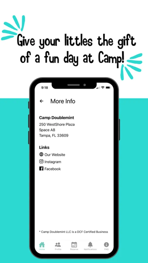 Camp Doublemint is daily drop-in childcare that is open from 9a-1pm, Monday - Friday located in Tampa, FL. We run, jump, play, do crafts, explore and learn everyday! Bring your little(s) ages 1-6, so you can have some free time in your morning. Use the app for easy and convenient booking, paying and check-in/check out. You can also receive notifications, photos of the day and reminders of your bookings. Space is limited, book your spot today!