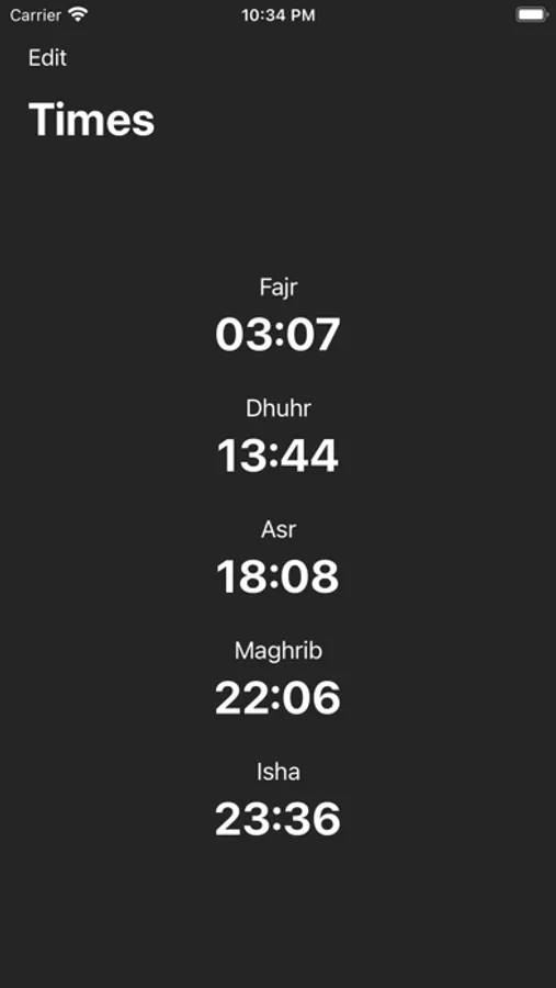 Simple salat times app where you can only see the praying times for the current day.