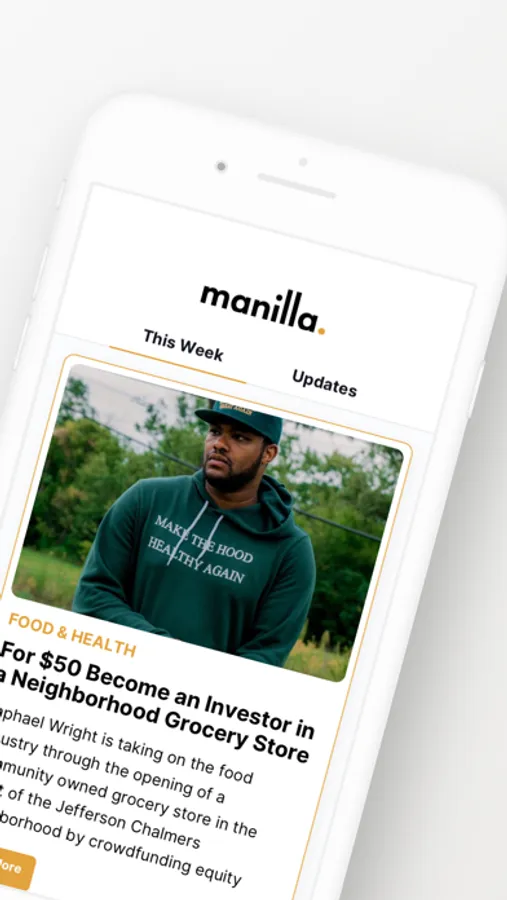 Each week our users will be presented with 5 curated pieces of content from local writers, organizers, and nonprofits. The weekly curation will include specific actions users can take to fight systemic issues, opportunities to donate to and invest in local nonprofits and businesses, and supplemental educational resources and news. Manilla works with organizers to share progress on their work and how a community of individuals are acting alongside you.
