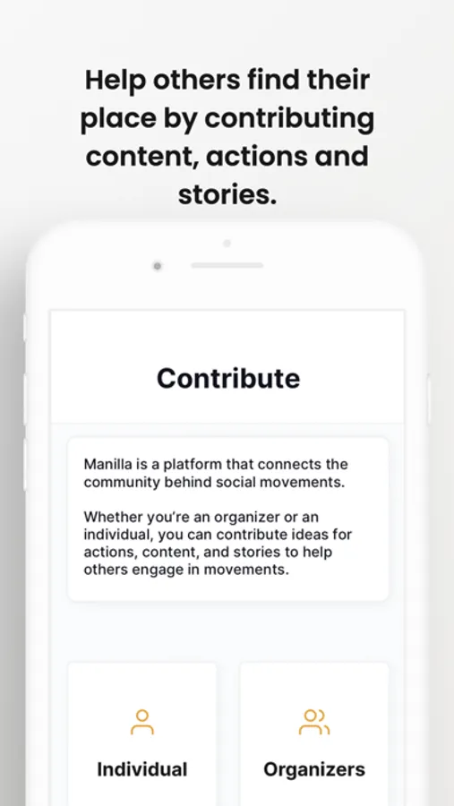 Manilla is a mobile app that curates opportunities for you to fight local systemic issues alongside a community of trusted activists, non-profits, and individuals seeking change. Manilla is a free platform where everyone can start learning and engaging in movements in their area.