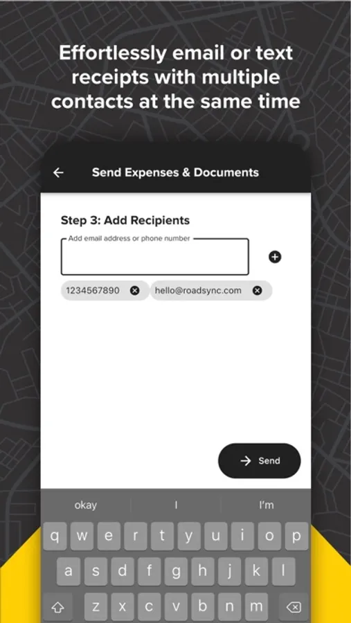Spend more time on the road and less time on expenses. With the RoadSync Driver app, easily pay for RoadSync Remote Checkout invoices, access your paper-based receipts, and text or email documents to multiple contacts at any time. Create a free account and get on your way to less paper, easier expense and document management, and streamlined third-party communications.