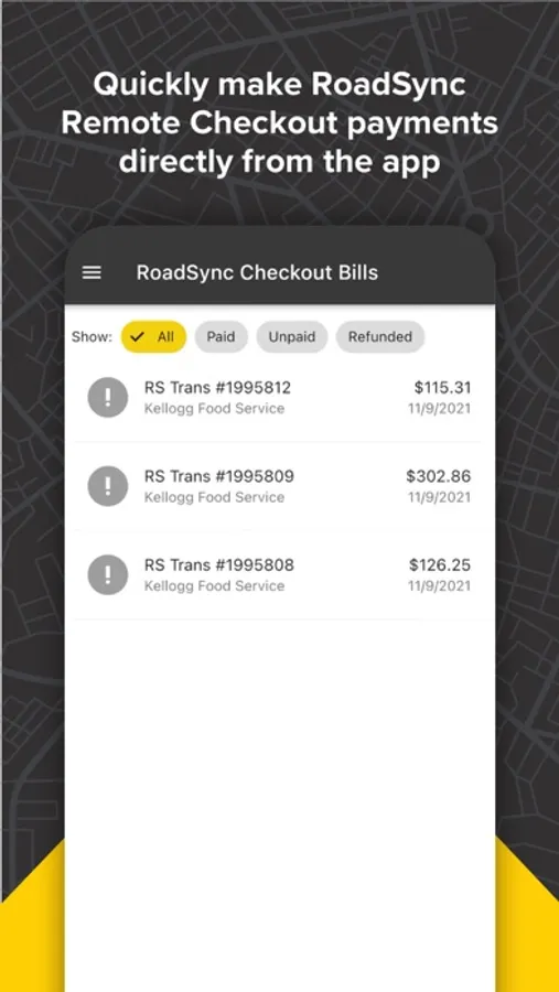- Quickly make RoadSync Remote Checkout payments directly from the app