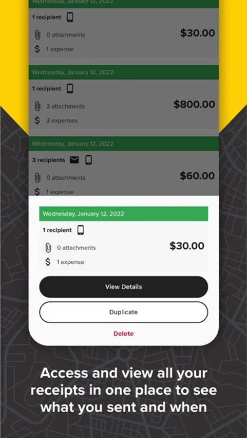 - Access all your receipts and documents in one place to see what you sent and when