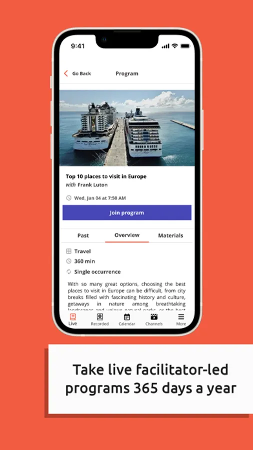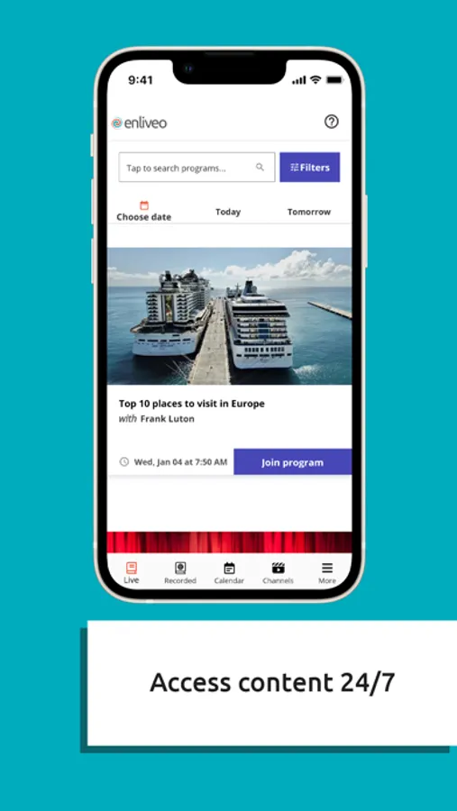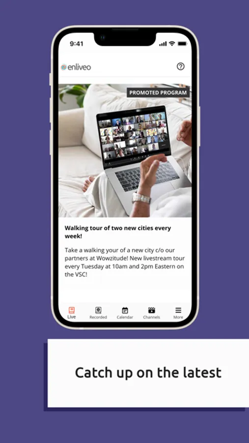 Programs are the main attraction at the enliveo. Offered live every day, they are listed in an easy-to-join format and require no preregistration. Just click on Join Program via your device for a real-time experience.