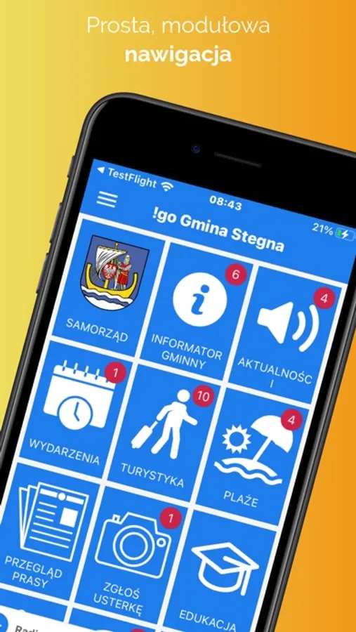 Używaj aplikacji !go Gmina Stegna, aby poznać różne instytucje i komunikować się z nimi. Czytaj najnowsze wiadomości i komunikaty. Poznaj swój samorząd i komunikuj się z radnymi oraz władzami miasta. Pomagaj miastu rozwijać się - zgłaszaj usterki mienia oraz bierz udział w konsultacjach społecznych i badaniach opinii.