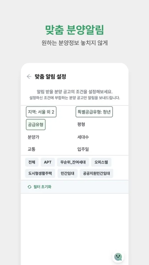 “신규청약 알림” - 신규로 등록된 매물 알림