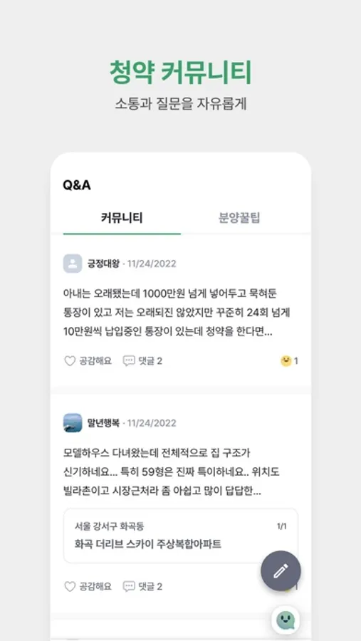 다른 사람들과 자유롭게 고민과 질문을 나눠요.