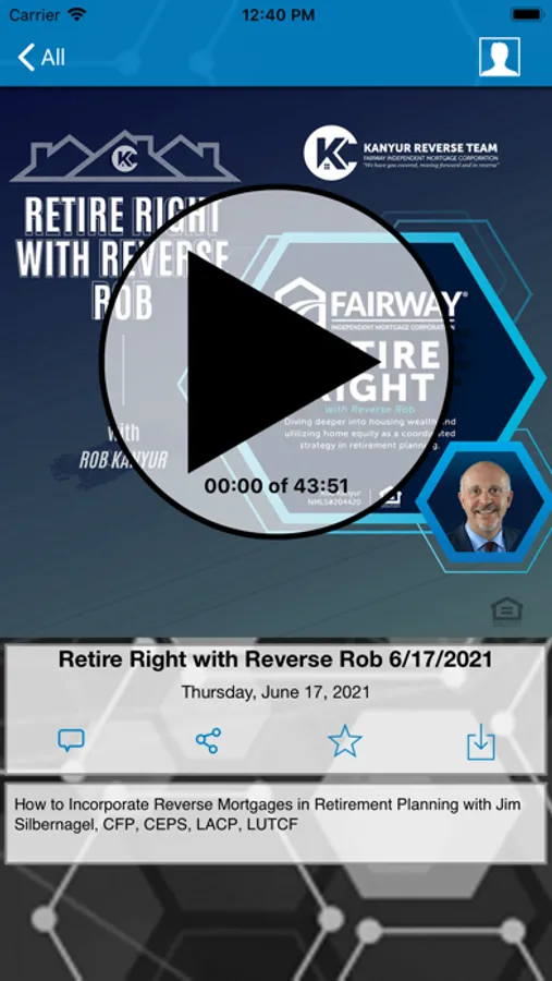 With this app, you are always connected to the latest episodes and the show. Quickly star episodes and save them to a list so you can easily enjoy them over and over! This app has a Car mode too! Rotate your phone to display larger playback controls. It is the best and most convenient way to access Retire Right with Reverse Rob.