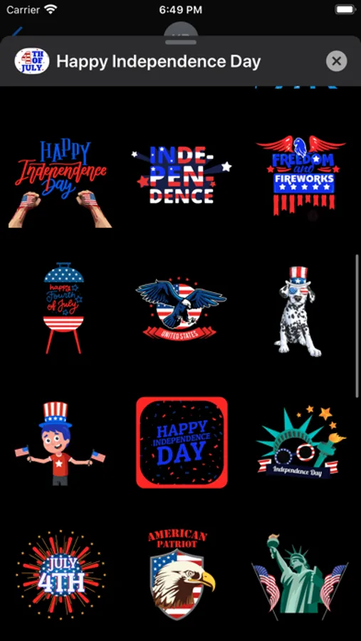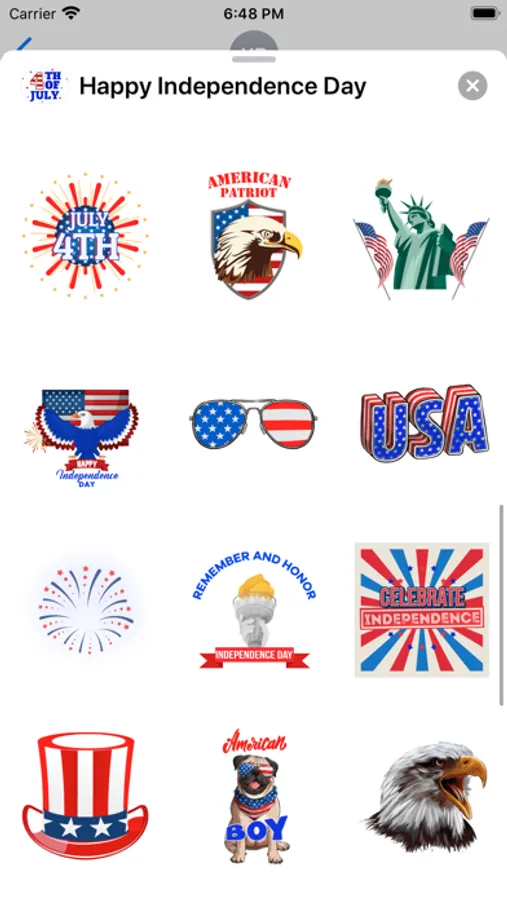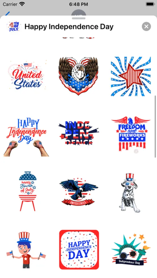 There is a wide variety of 4th of July arts you can choose from this app, peel and stick them over conversation bubbles, images, photos, even on other stickers.