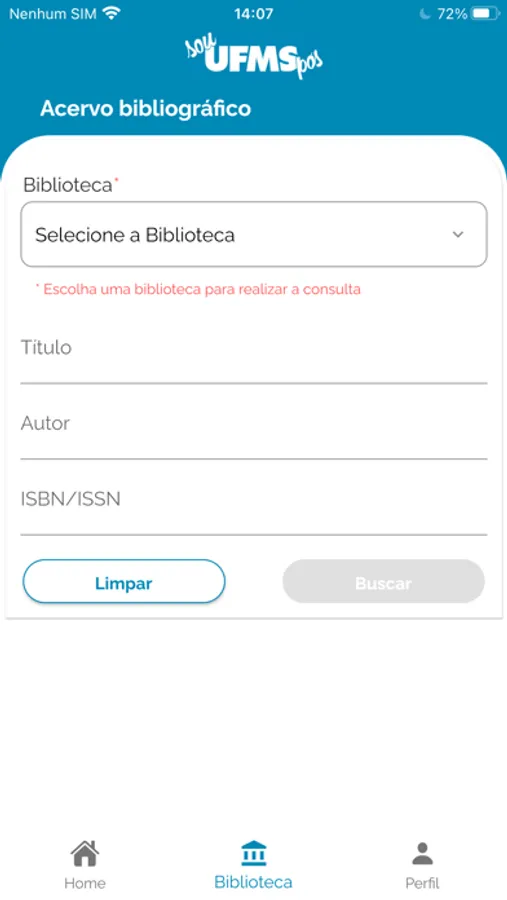 - Consulta ao acervo de livros de todas as bibliotecas da UFMS.