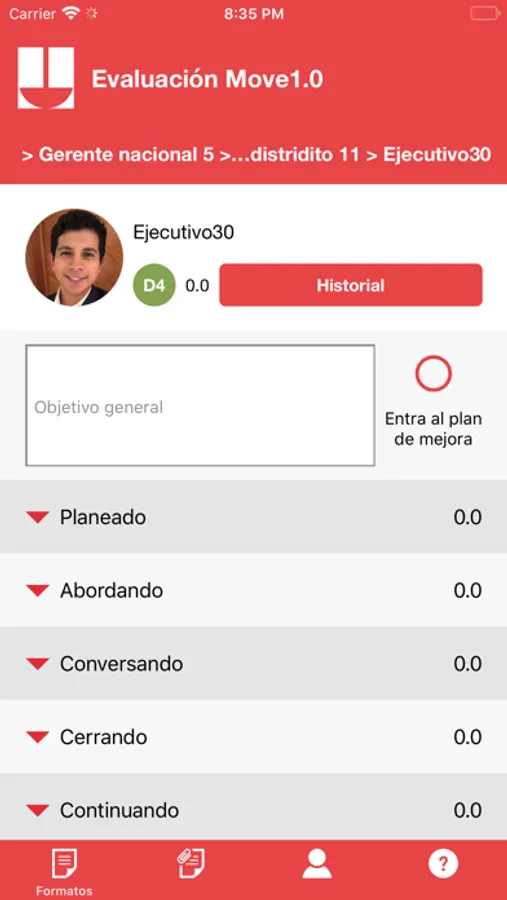 Estimado colaborador; en este formato de implementación, te pedimos que valores lo observado durante tu visita, para ello considera lo siguiente: Se debe usar un formato por ejecutivo, no por entrevista con el médico, si visitarás a dos ejecutivos deberás enviar 2 formatos nada más.
