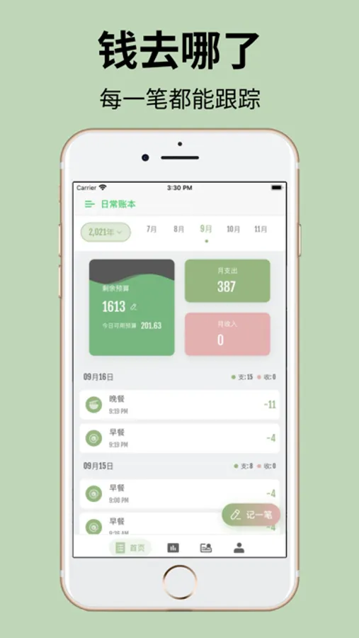 * 丰富图表:柱状图、饼图,帮你快速分析消费情况。