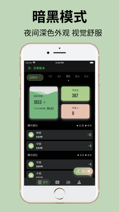 * 黑暗模式、多彩主题:主题色、收支色、背景图。