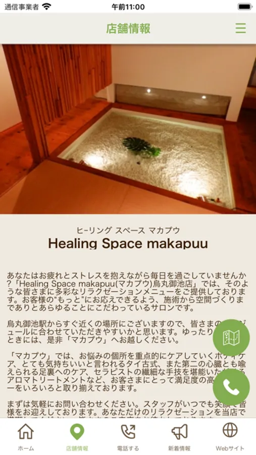 店舗のマップが表示され、地図アプリとも連携しているので、初めてのご来店の時も簡単に見つけることができます。