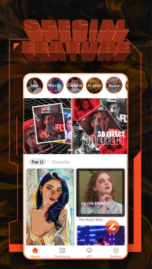 There are 500+ different kinds of video templates waiting for you to use. Such as Lyrics, Slice, Cartoon, Beats, and so on. Different styles of templates, let the video become an artwork in one second.