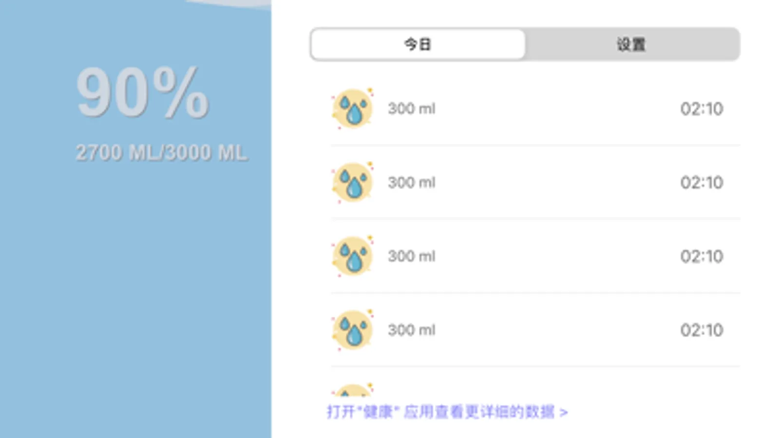 -[Drinking reminder panel]: You can set a drinking goal every day, and at the same time, you can record a single drinking situation by manually triggering the recording and timing reminders. Drinking water data will be synchronized to [Health-Water]