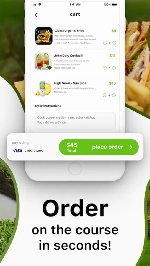Order food, drinks, clubhouse cocktails or even pro shop items on the course and get them delivered to