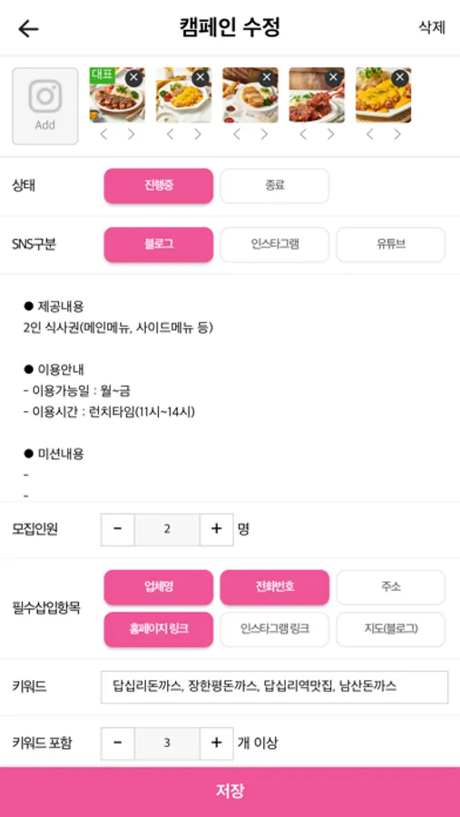 위한 앱으로 캠페인 관리 기능을 기본으로 캠페인에