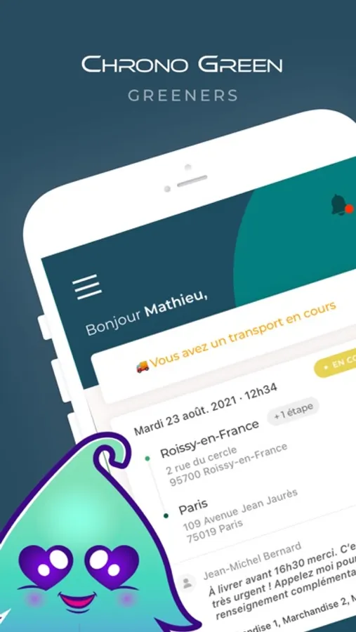 L'app Greeners de Chrono Green, vous permet de trouver des missions de transport à proximité de vous. Grâce à la géolocalisation, l’application propose uniquement des missions disponibles dans votre secteur correspondant à votre profil (type de véhicule, disponibilité).