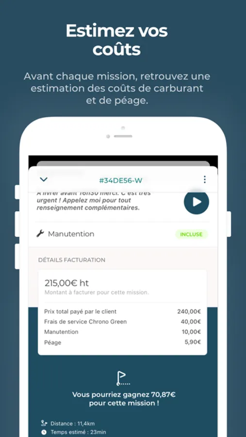 Vous retrouverez tous les détails du transport directement sur l'application et vous pourrez même contacter directement le client si vous avez des questions à propos de la mission.