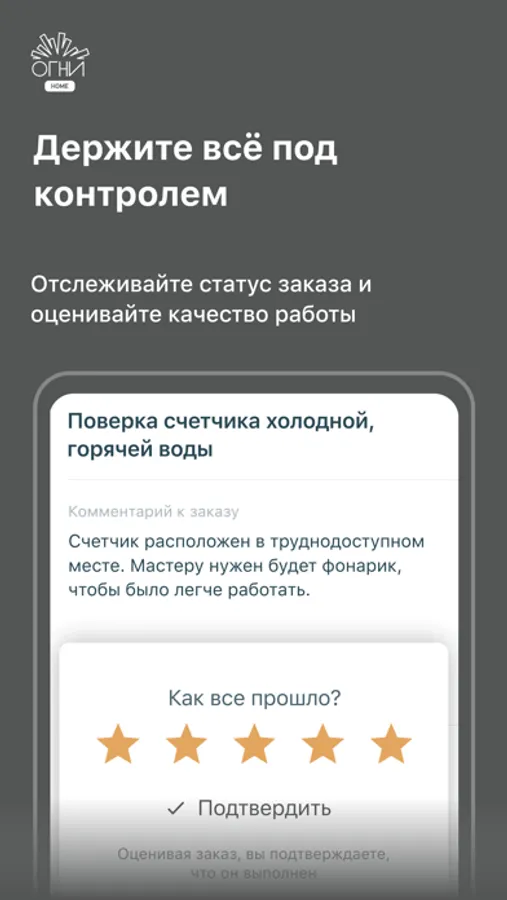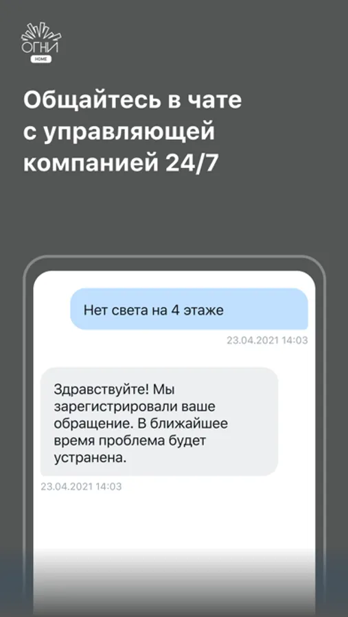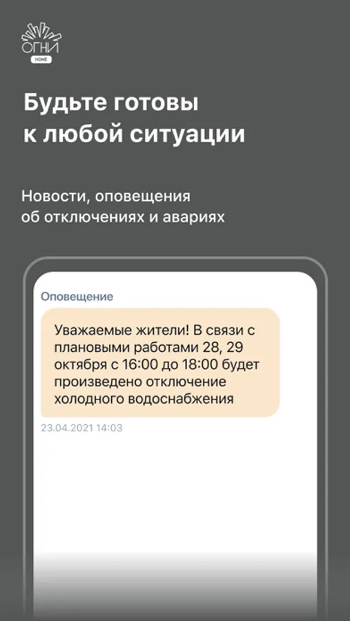 ОГНИ Home – мобильное приложение для резидентов жилых и апарт-комплексов «Бизнес-класса», находящихся под управлением Группы компаний "ОГНИ".